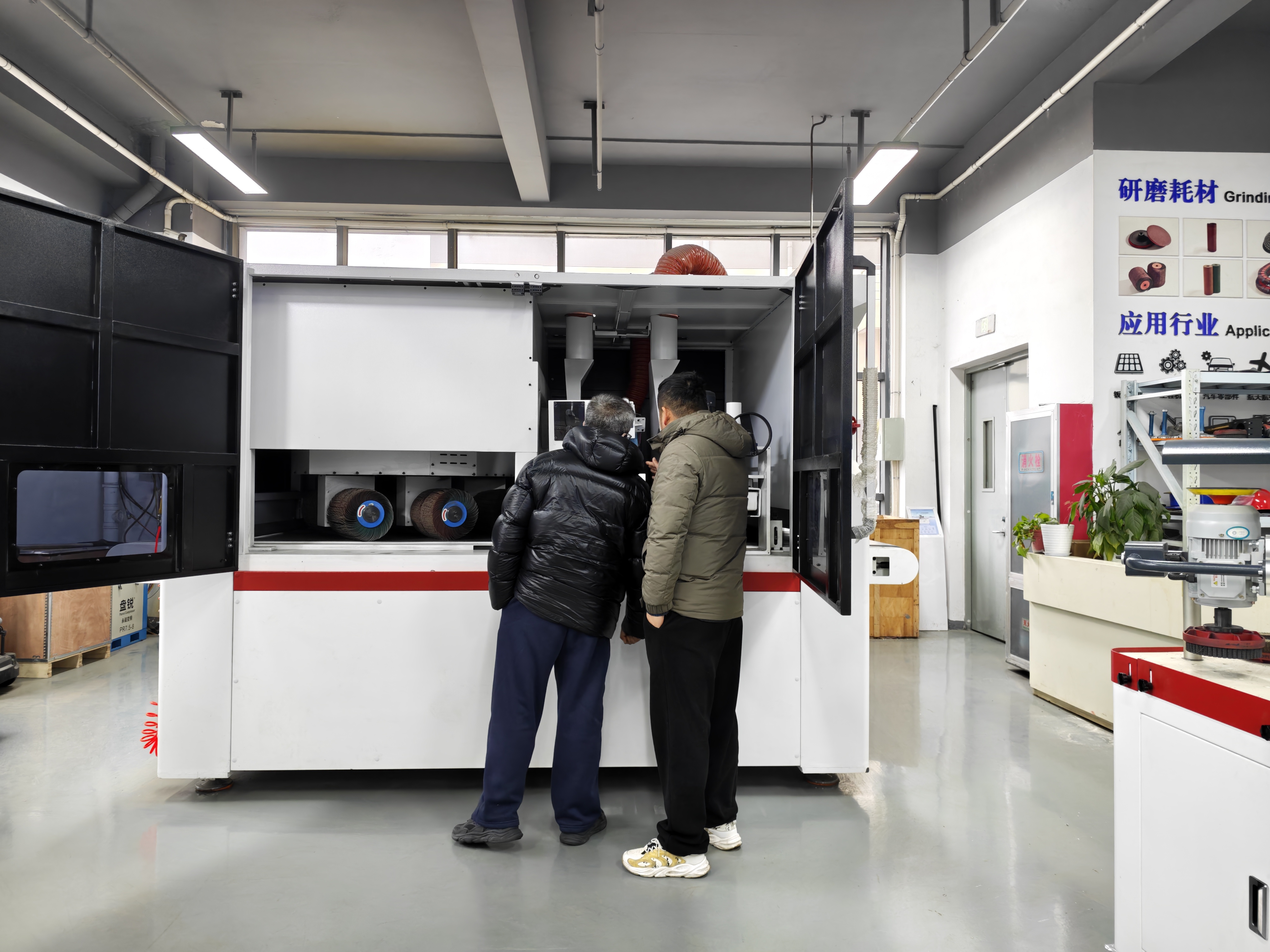 用于碳钢板、铝板、铜板、钛合金、各类有色金属、橡塑材料等使产品表面达到拉丝、精密抛光、去划伤、去除纵向毛刺、去氧化皮的效果,从而使产品表面达到更美观、表面更光滑。